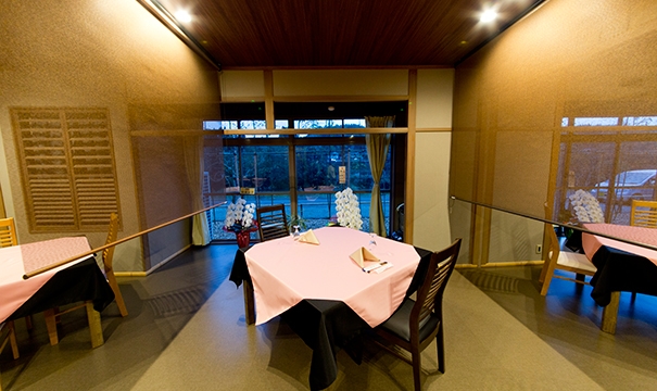 ライトアップされた竹の植栽を眺める食事処で、地元で採れる旬の食材をふんだんに使用した黒毛和牛会席を心ゆくまでご堪能ください。