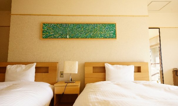 壁面には、県在住のアーティストが手がけたアートパネルが。部屋名がテーマになった作品は、各部屋ごとに異なる作家とストーリーで展開され、旅のひとときをそっと彩ります。